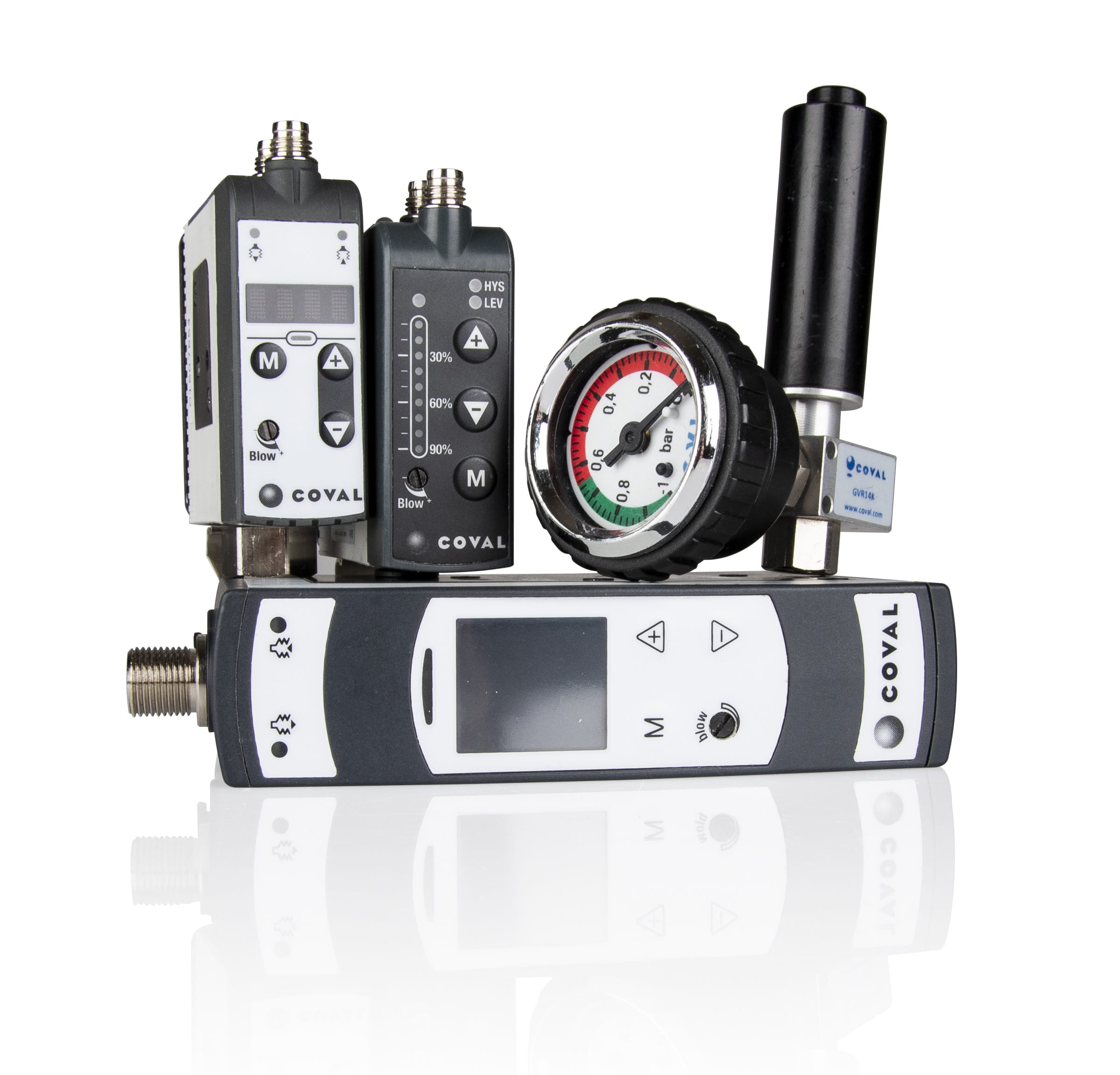 A beépített nyomásszabályozó szabályozza a bemeneti nyomást az ejektorban 3,5 bar nyomásra. A Coval teszteket végzett, és arra a következtetésre jutott, hogy a legoptimálisabb vákuumszint és vákuumáramlás 3,5 bar bemeneti nyomáson érhető el. Ez kevesebb energiát igényel a rendszertől és költséget takarít meg.