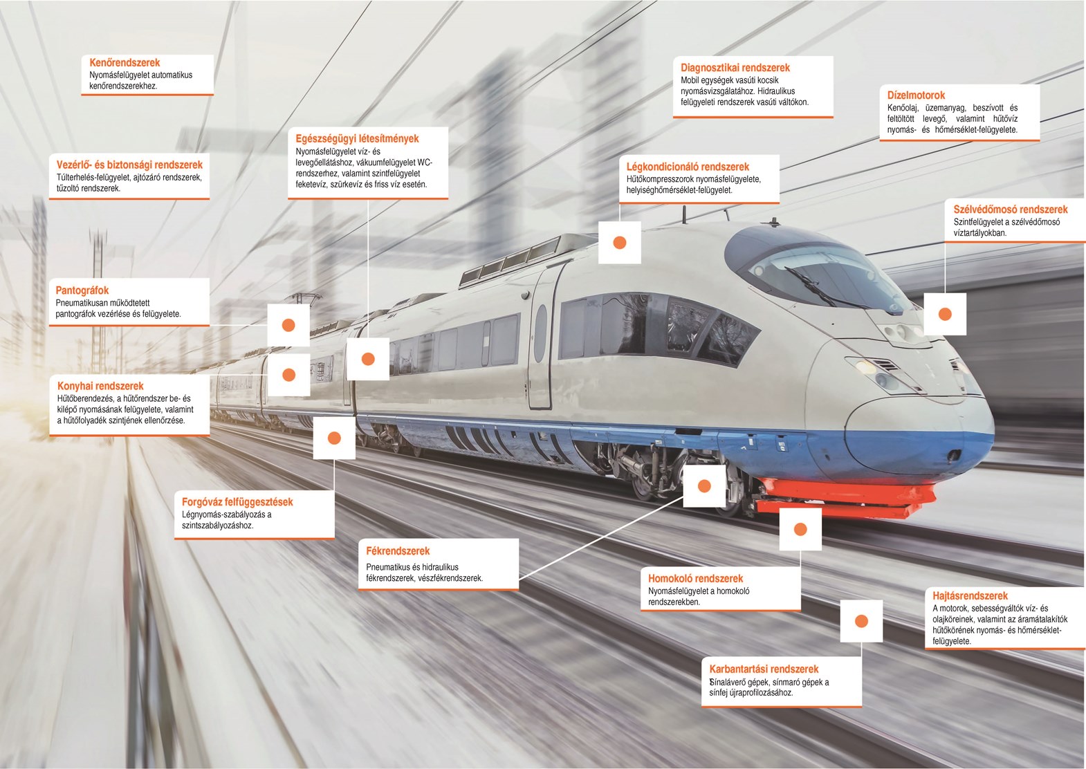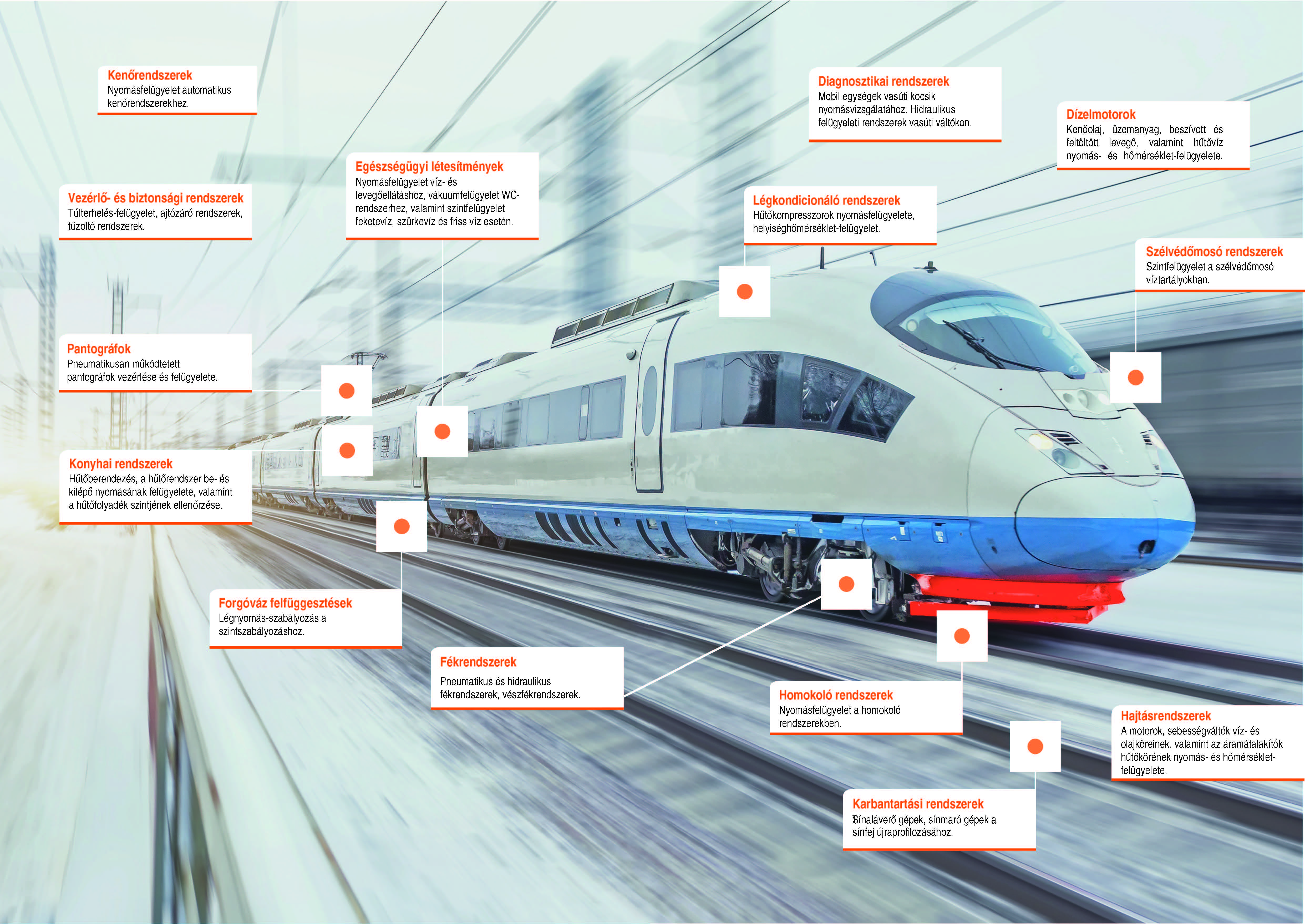 Nyomás és hőmérséklet figyelése motorok víz- vagy olajköreiben, sebességváltók és áramváltók hűtőköreiben